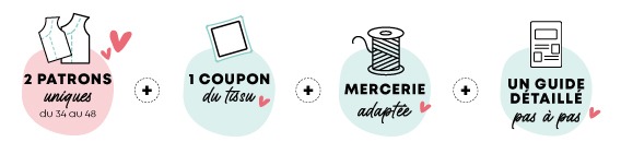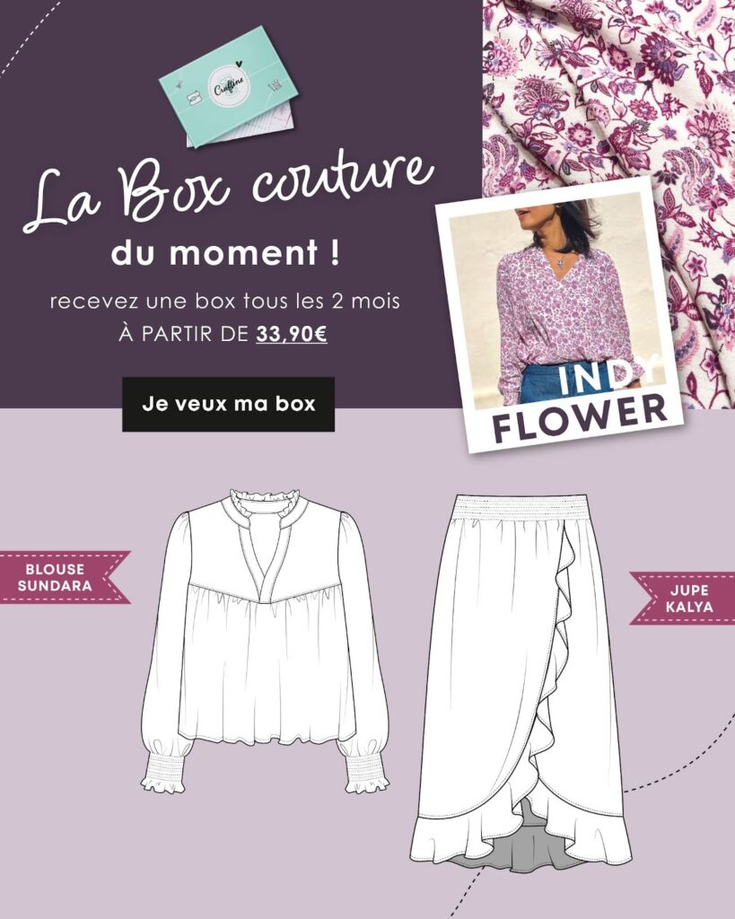 On vous propose 2 nouveaux patrons couture inédits : La blouse Sundara et la jupe Kalya. Sur le flyer de la box, vous avez la possibilité de découvrir les premières créations d’abonnées. Cela vous permettra de vous projeter plus facilement !